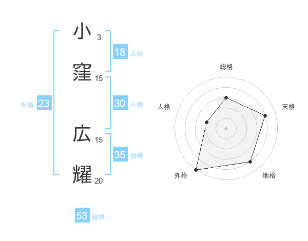 小窪 広耀さんを姓名の画数から五運を鑑定