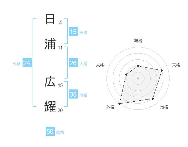 日浦 広耀さんの総格は50画の2点!