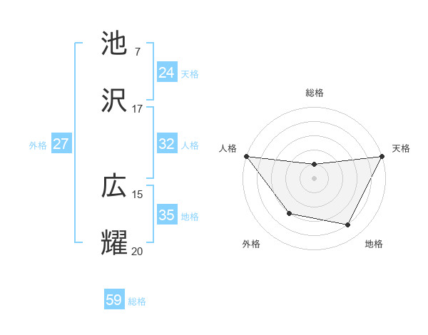 池沢 広耀さんを姓名の画数から五運を鑑定