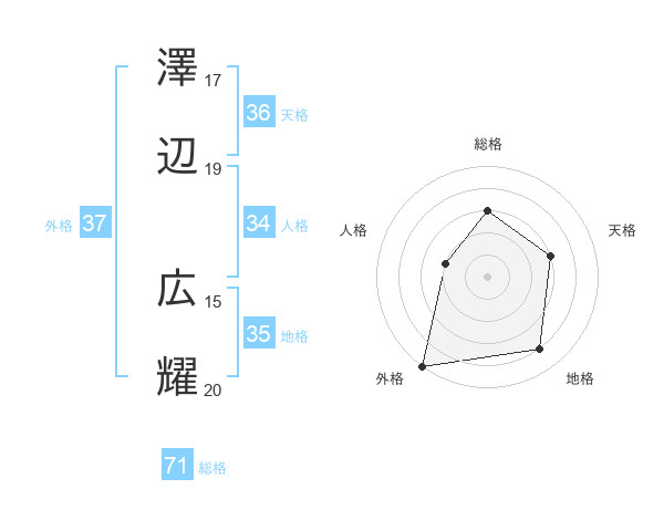 澤辺 広耀さんを姓名の画数から五運を鑑定