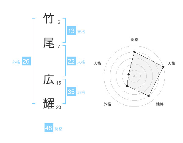 竹尾 広耀さんを姓名の画数から五運を鑑定
