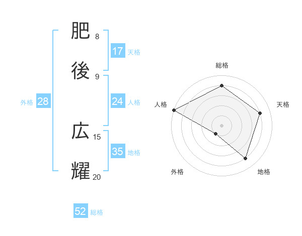 肥後 広耀さんの総格は52画の4点!
