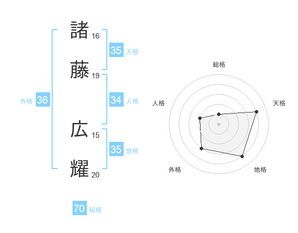 諸藤 広耀さんを姓名の画数から五運を鑑定