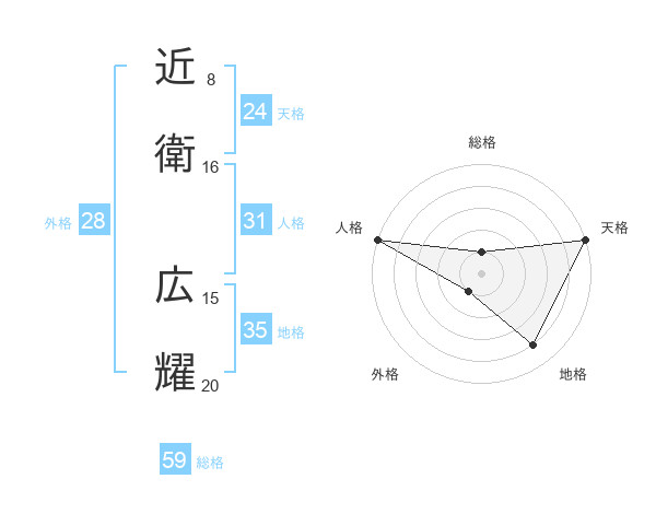 近衛 広耀さんの総格は59画の1点!