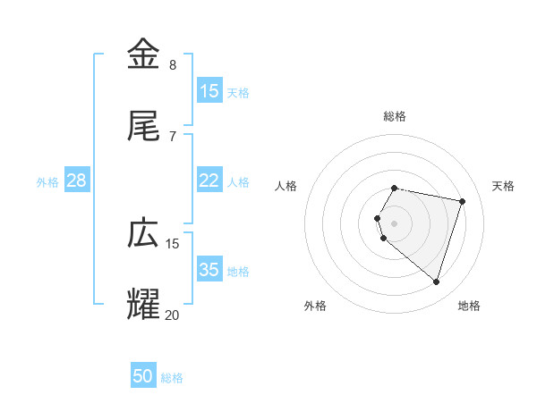 金尾 広耀さんの総格は50画の2点!
