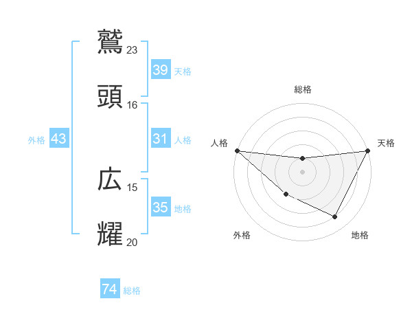 鷲頭 広耀さんを姓名の画数から五運を鑑定