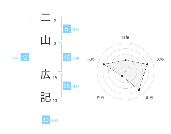 二山 広記さんを姓名の画数から五運を鑑定