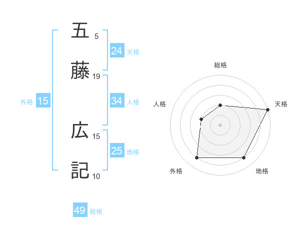 五藤 広記さんの天格は24画の5点!