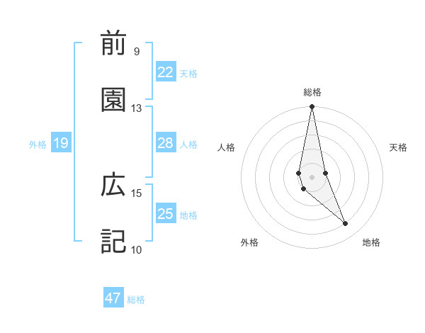 前園 広記さんの総格は47画の5点!