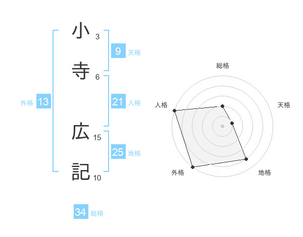 小寺 広記さんの総格は34画の2点