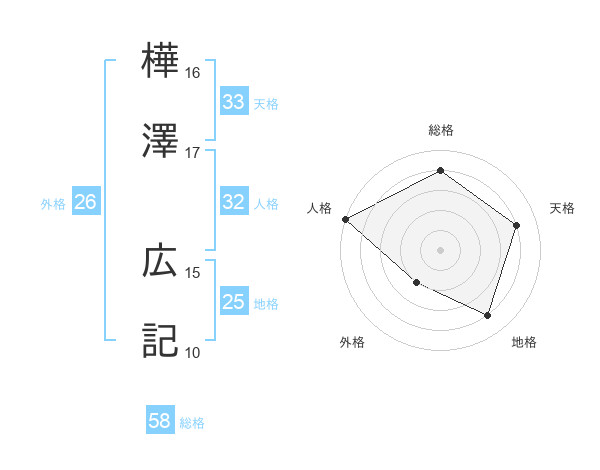 樺澤 広記さんを姓名の画数から五運を鑑定