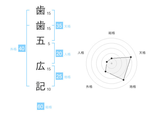 歯歯五 広記さんの総格は60画の1点!