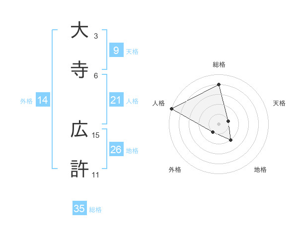 大寺 広許さんの総格は35画の4点!