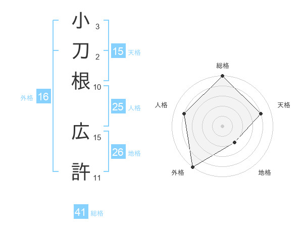 小刀根 広許さんの総格は41画の5点