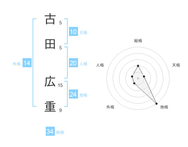 古田 広重さんを姓名の画数から五運を鑑定