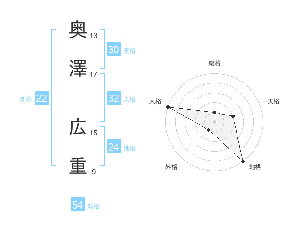 奥澤 広重さんの総格は54画の1点!