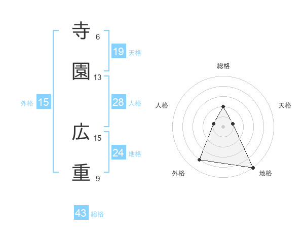 寺園 広重さんの総格は43画の2点!
