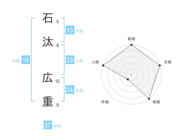 石汰 広重さんの総格は37画の5点!