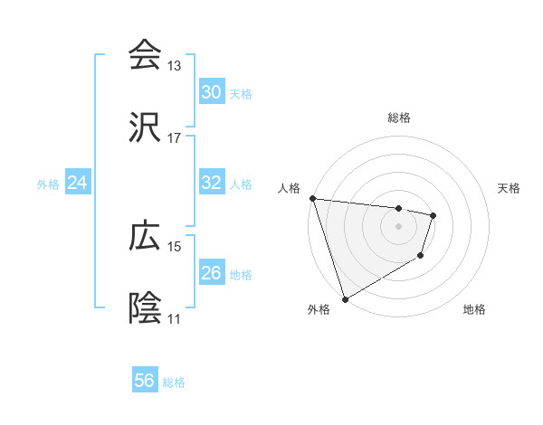 会沢 広陰さんを姓名の画数から五運を鑑定