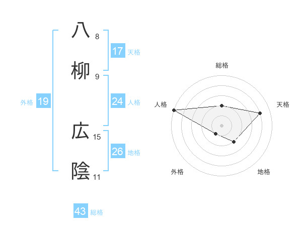 八柳 広陰さんの総格は43画の2点!