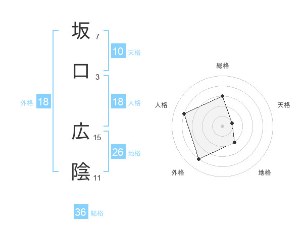 坂口 広陰さんの総格は36画の3点!