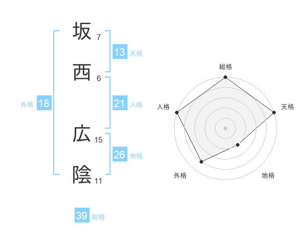坂西 広陰さんを姓名の画数から五運を鑑定