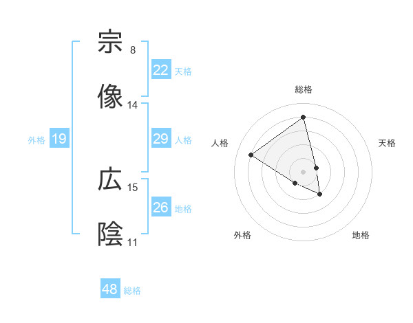 宗像 広陰さんの総格は48画の4点!