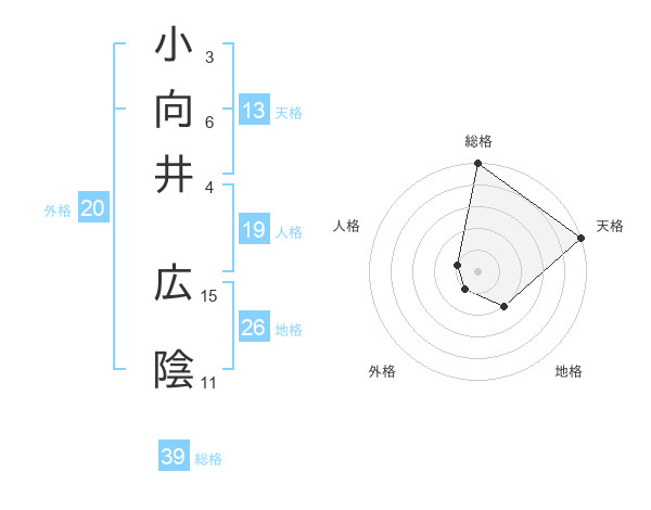 小向井 広陰さんの総格は39画の5点!