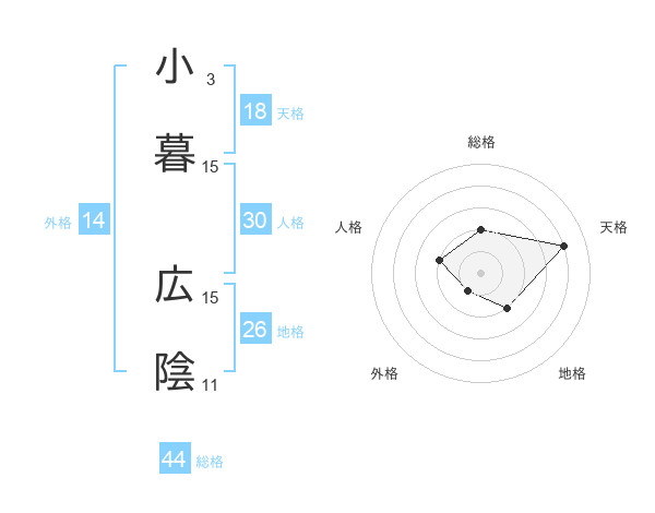 小暮 広陰さんを姓名の画数から五運を鑑定