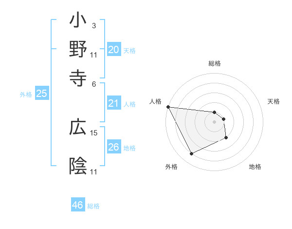 小野寺 広陰さんを姓名の画数から五運を鑑定