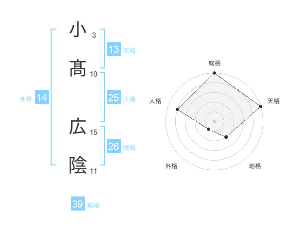 小髙 広陰さんの総格は39画の5点!