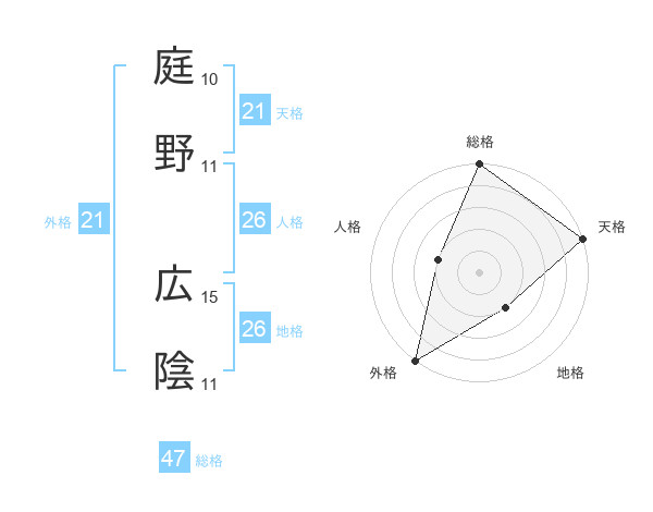 庭野 広陰さんを姓名の画数から五運を鑑定