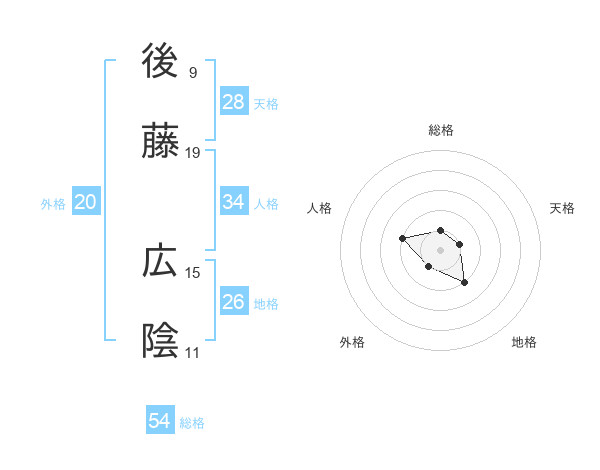 後藤 広陰さんを姓名の画数から五運を鑑定
