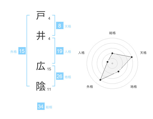 戸井 広陰さんの天格は8画の4点!