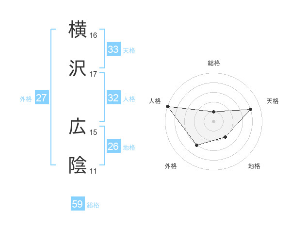 横沢 広陰さんを姓名の画数から五運を鑑定