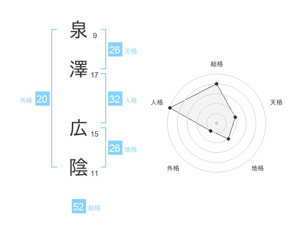 泉澤 広陰さんを姓名の画数から五運を鑑定