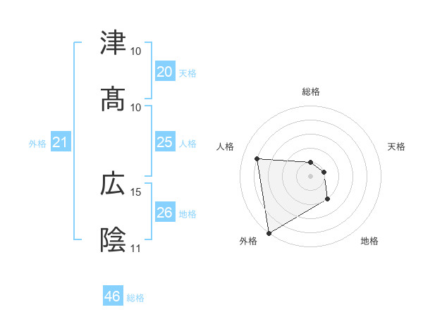 津髙 広陰さんを姓名の画数から五運を鑑定