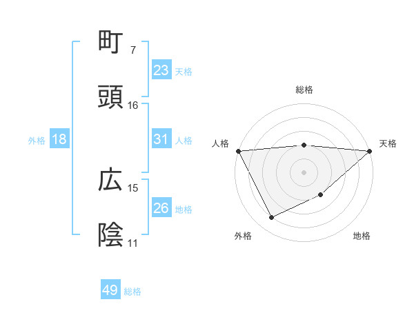 町頭 広陰さんの総格は49画の2点!