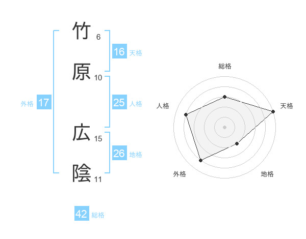 竹原 広陰さんの総格は42画の3点!