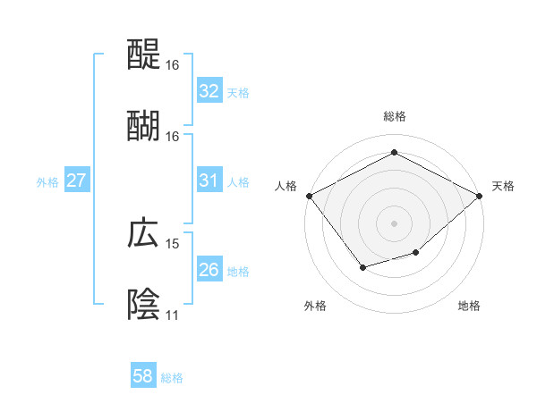 醍醐 広陰さんの総格は58画の4点!