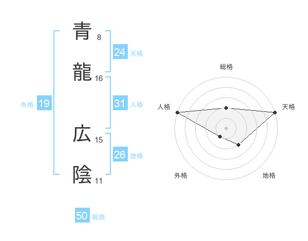 青龍 広陰さんの総格は50画の2点!
