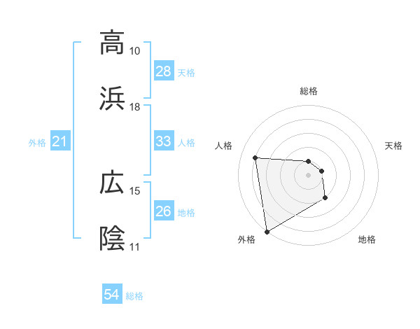 高浜 広陰さんの総格は54画の1点!