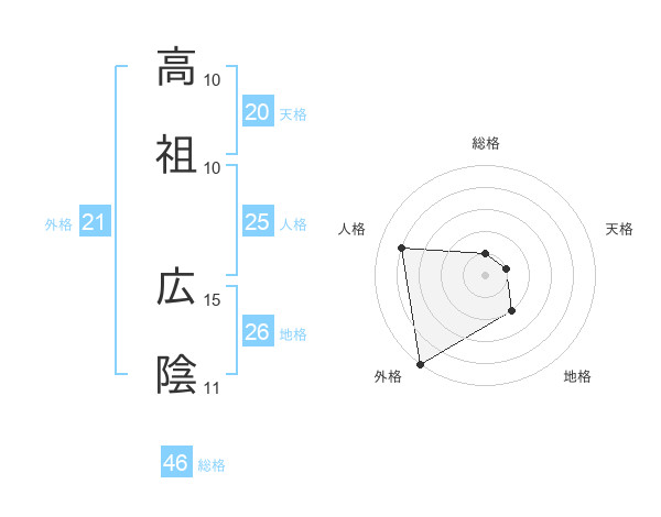 高祖 広陰さんを姓名の画数から五運を鑑定