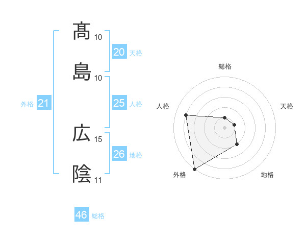 髙島 広陰さんを姓名の画数から五運を鑑定