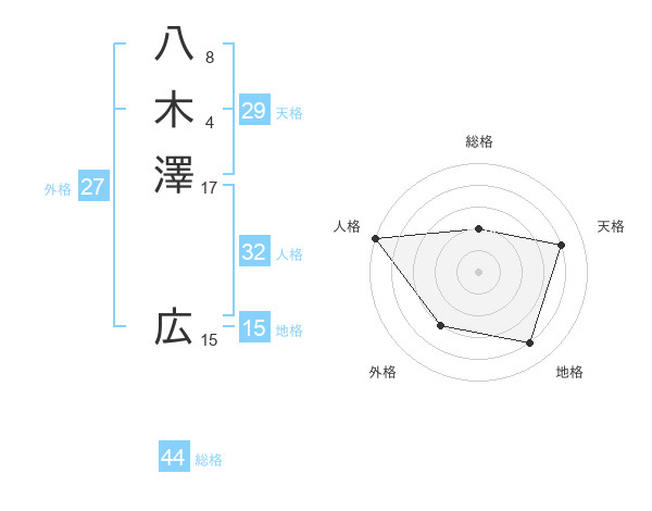 八木澤 広さんを姓名の画数から五運を鑑定