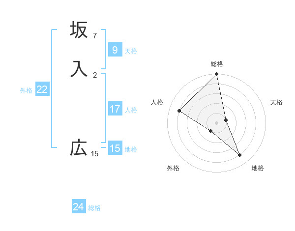 坂入 広さんの総格は24画の5点!