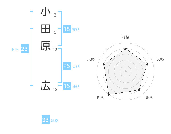 小田原 広さんの総格は33画の4点!