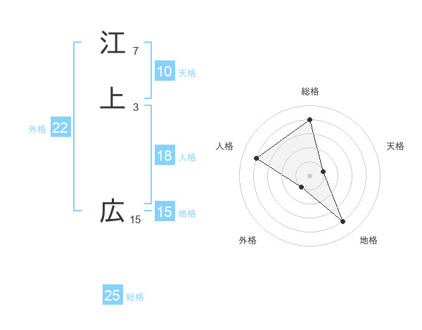 江上 広さんを姓名の画数から五運を鑑定