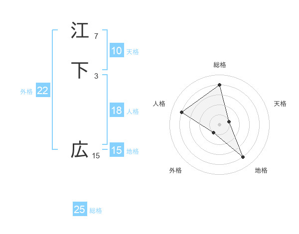 江下 広さんを姓名の画数から五運を鑑定