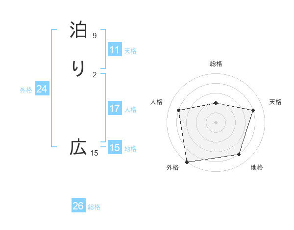 泊り 広さんの総格は26画の2点!